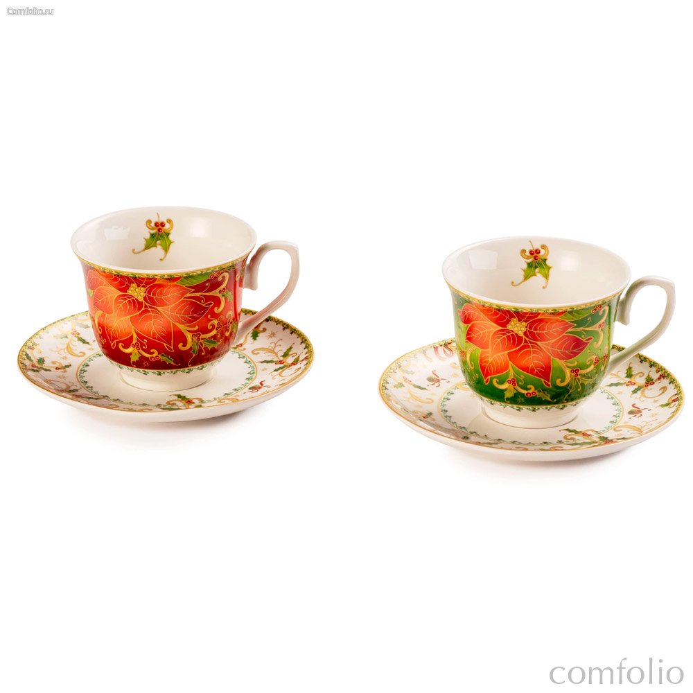 Набор кофейных чашек с блюдцами Lamart Palais Royal Рождественская звезда 100 мл, фарфор, 2 шт, п/к - Lamart