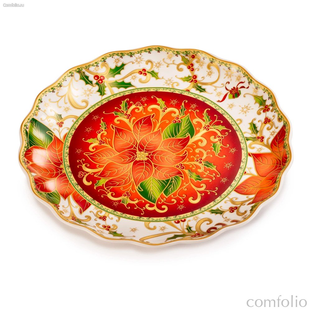 Блюдо Lamart Palais Royal Рождественская звезда 28 см, борт волна, фарфор - Lamart