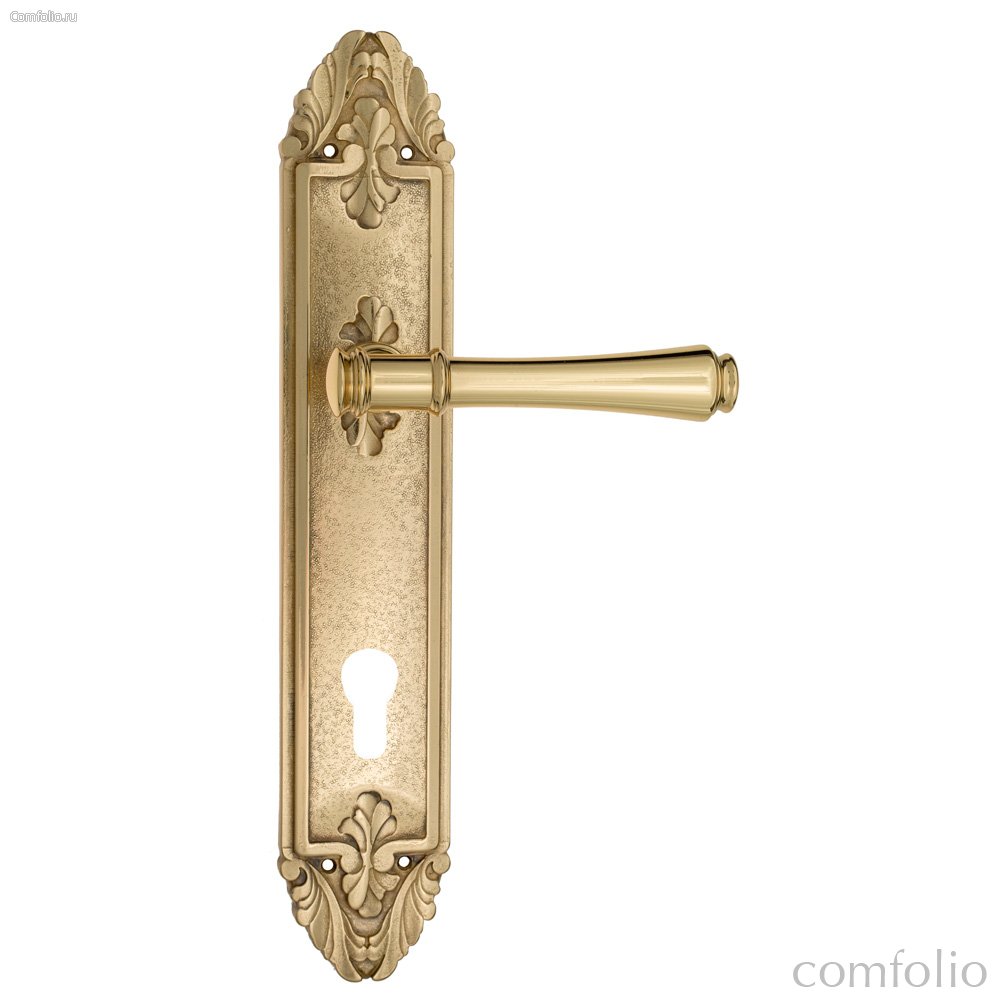 Дверная ручка Venezia Callisto CYL на планке PL90 полированная латунь - Venezia Collezione