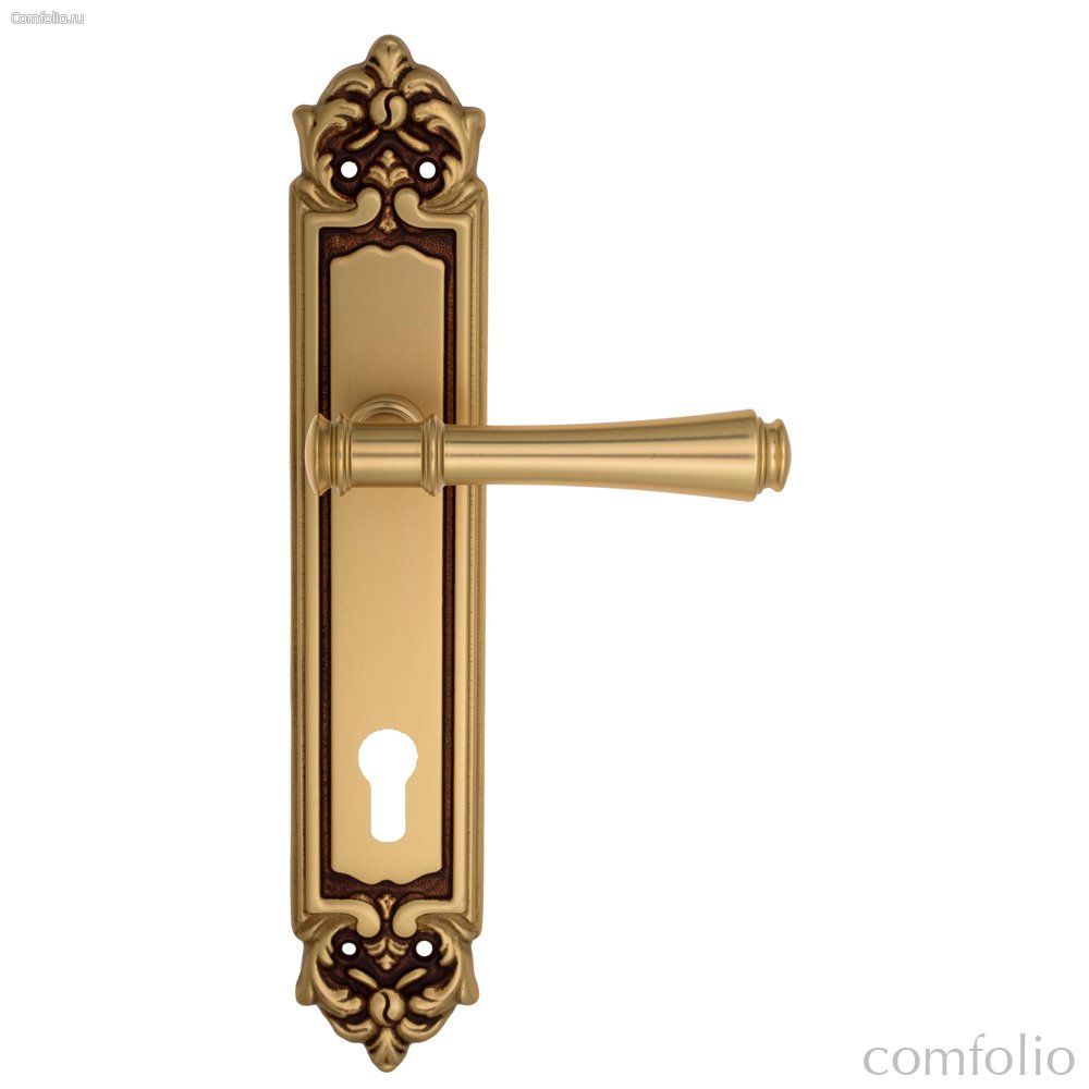 Дверная ручка Venezia Callisto CYL на планке PL96 французское золото + коричневый - Venezia Collezione