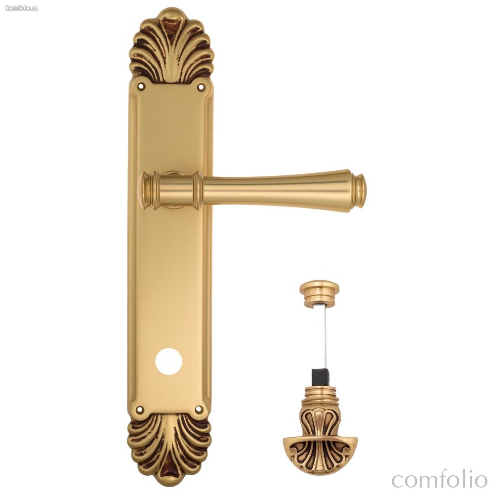 Дверная ручка Venezia Callisto WC-4 на планке PL87 французское золото + коричневый - Venezia Collezione