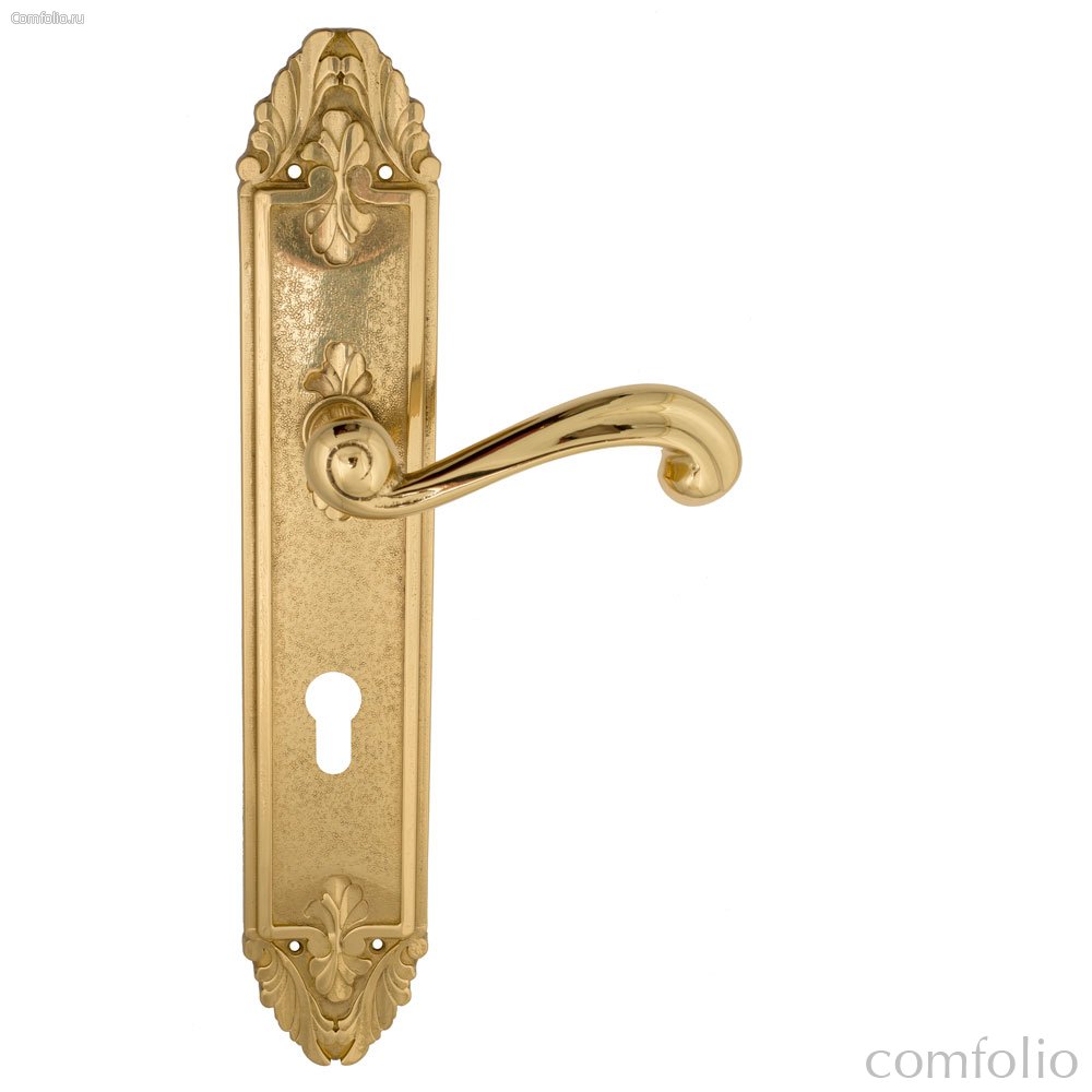 Дверная ручка Venezia Carnevale CYL на планке PL90 полированная латунь - Venezia Collezione