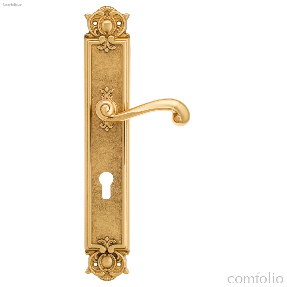 Дверная ручка Venezia Carnevale CYL на планке PL97 полированная латунь - Venezia Collezione