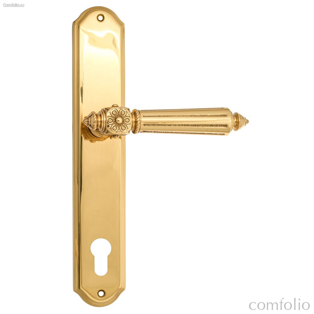 Дверная ручка Venezia Castello CYL на планке PL02 полированная латунь - Venezia Collezione