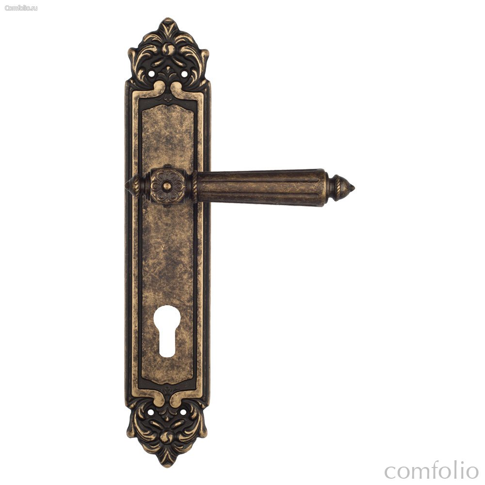 Дверная ручка Venezia Castello CYL на планке PL96 античная бронза - Venezia Collezione