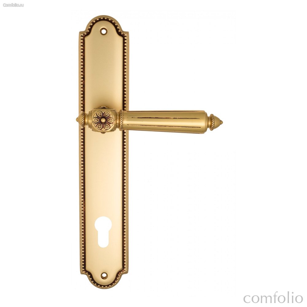 Дверная ручка Venezia Castello CYL на планке PL98 французское золото + коричневый - Venezia Collezione
