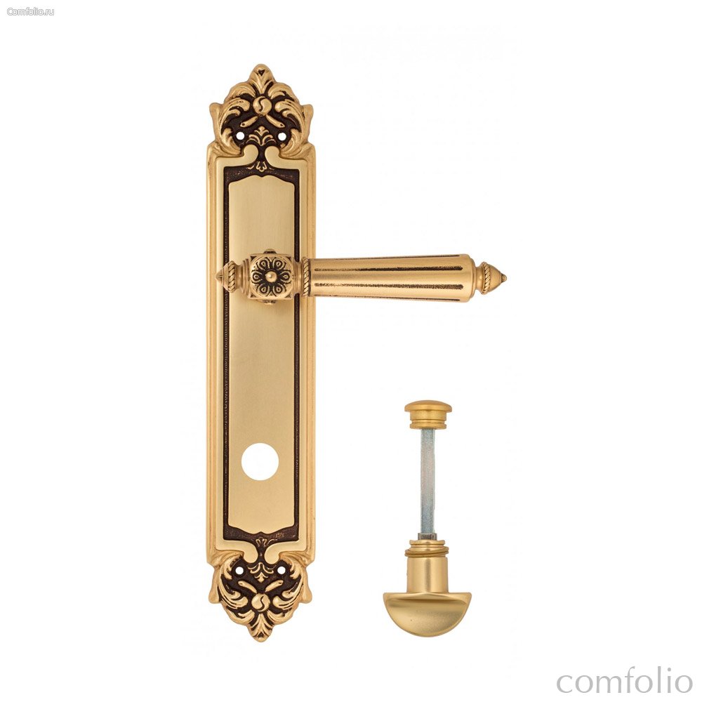 Дверная ручка Venezia Castello WC-2 на планке PL96 французское золото + коричневый - Venezia Collezione