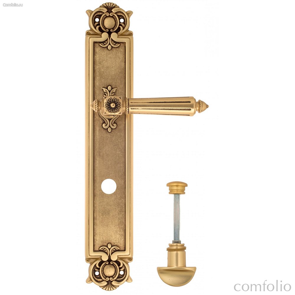 Дверная ручка Venezia Castello WC-2 на планке PL97 французское золото + коричневый - Venezia Collezione