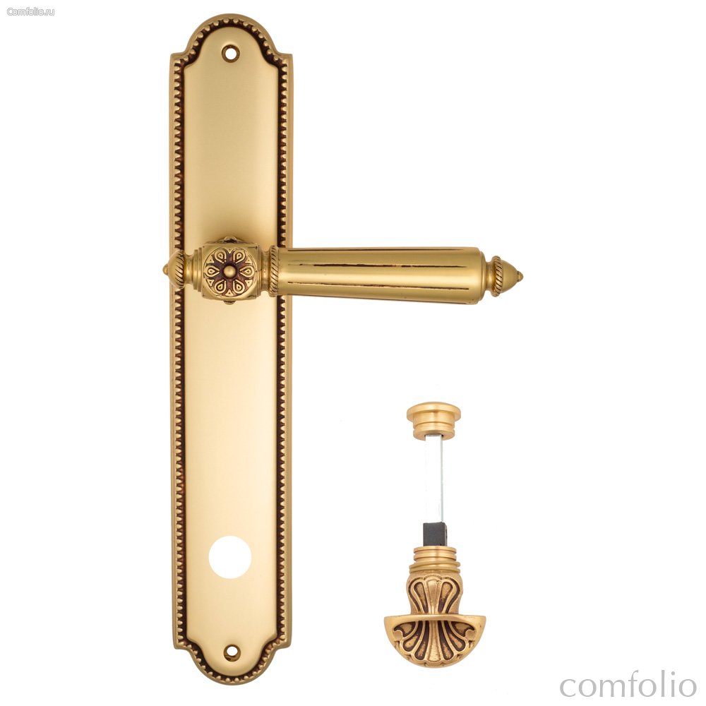 Дверная ручка Venezia Castello WC-4 на планке PL98 французское золото + коричневый - Venezia Collezione