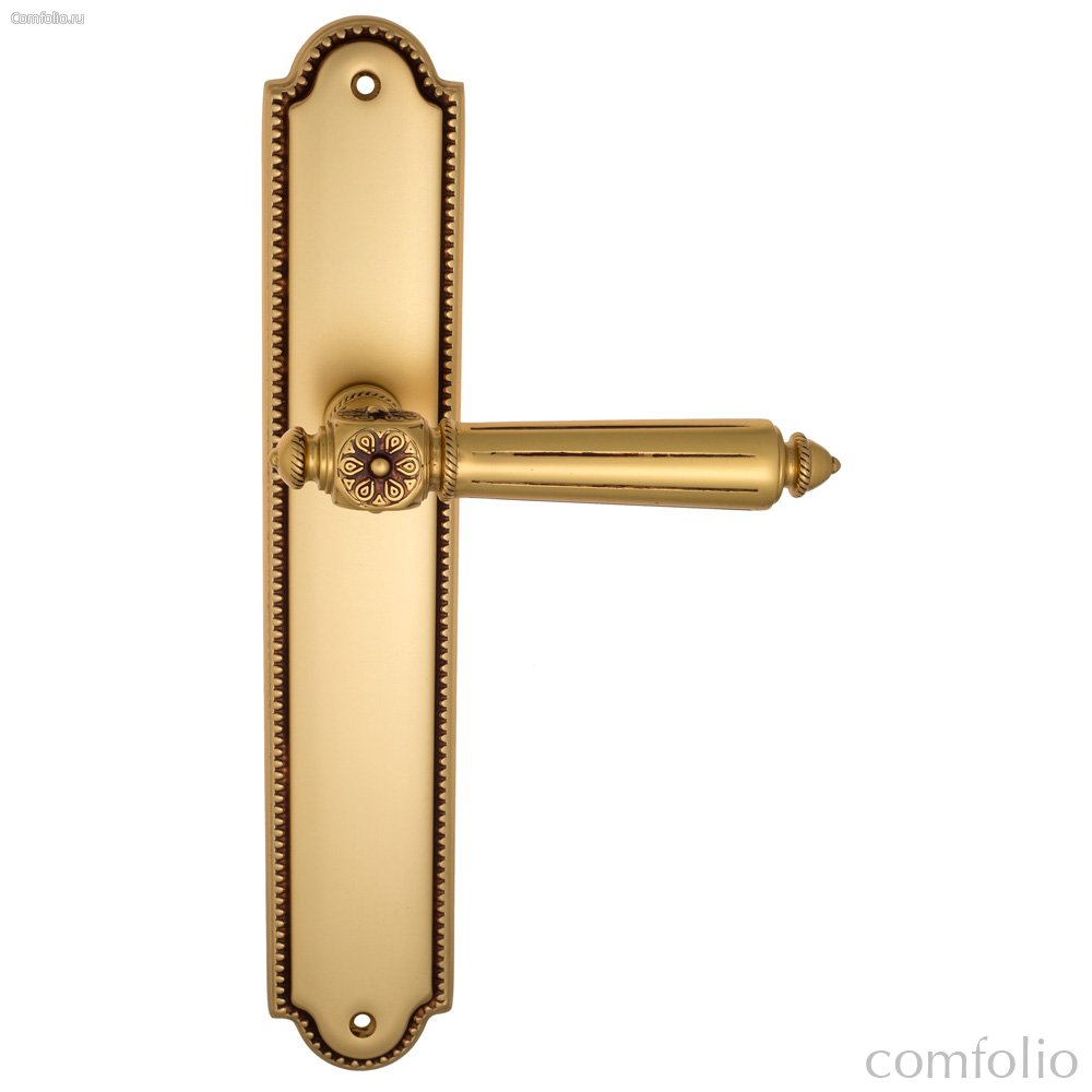 Дверная ручка Venezia Castello на планке PL98 французское золото + коричневый - Venezia Collezione