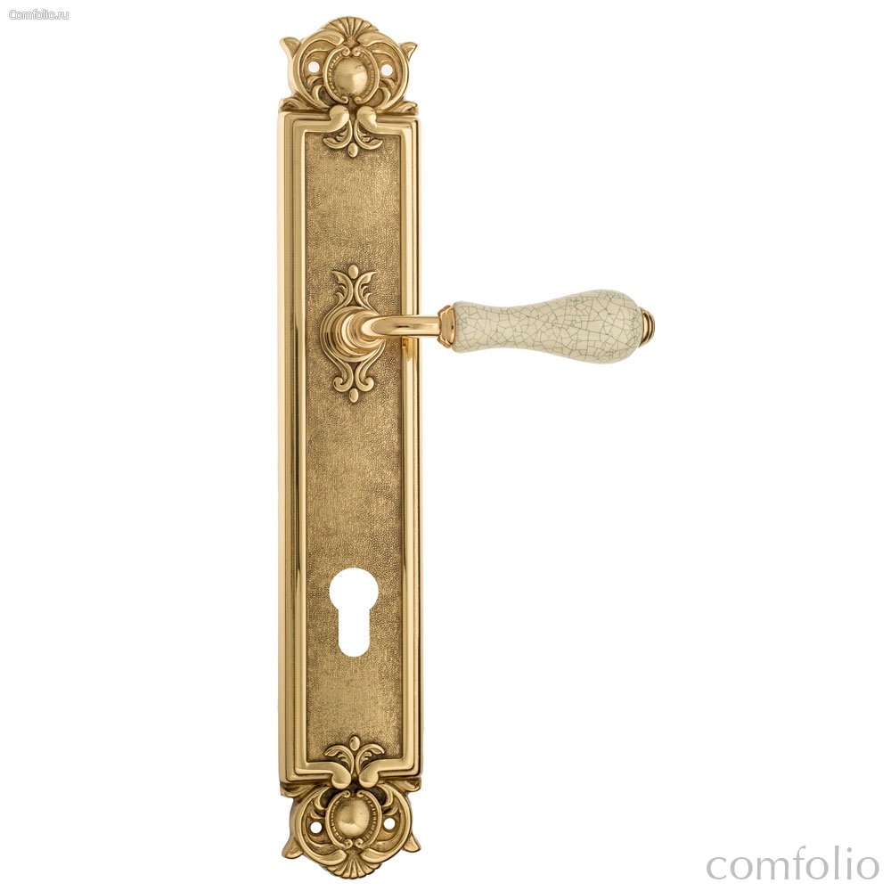 Дверная ручка Venezia Colosseo белая керамика паутинка CYL на планке PL97 полированная латунь - Venezia Collezione