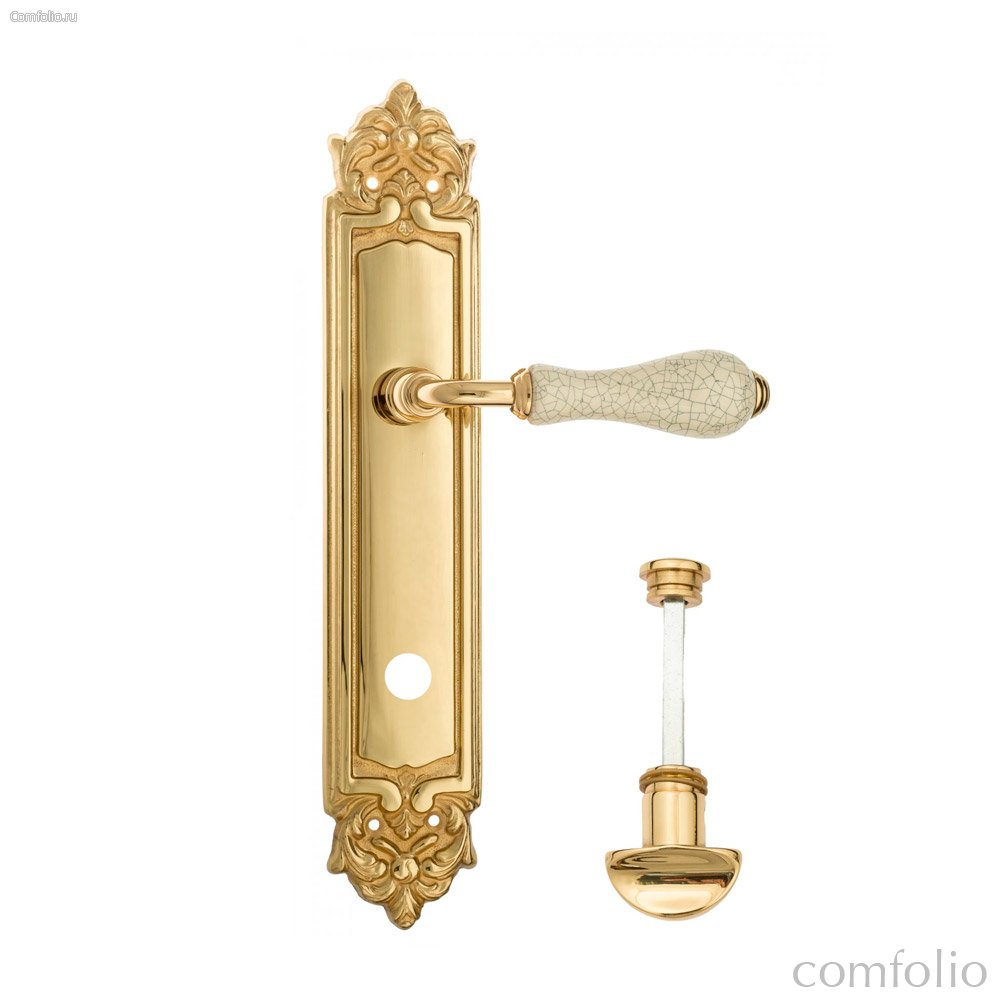 Дверная ручка Venezia Colosseo белая керамика паутинка WC-2 на планке PL96 полированная латунь - Venezia Collezione