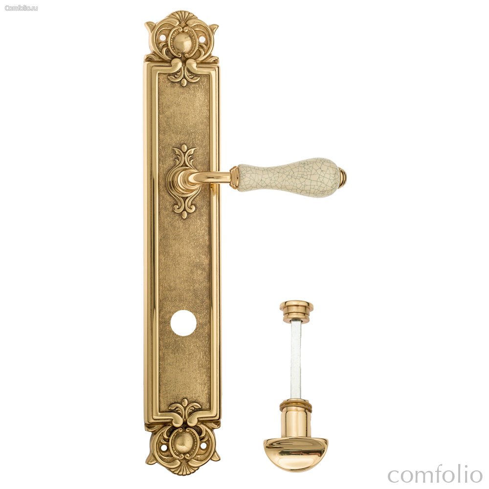 Дверная ручка Venezia Colosseo белая керамика паутинка WC-2 на планке PL97 полированная латунь - Venezia Collezione