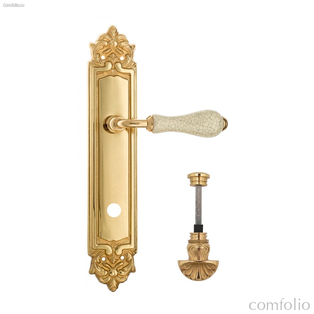 Дверная ручка Venezia Colosseo белая керамика паутинка WC-4 на планке PL96 полированная латунь - Venezia Collezione