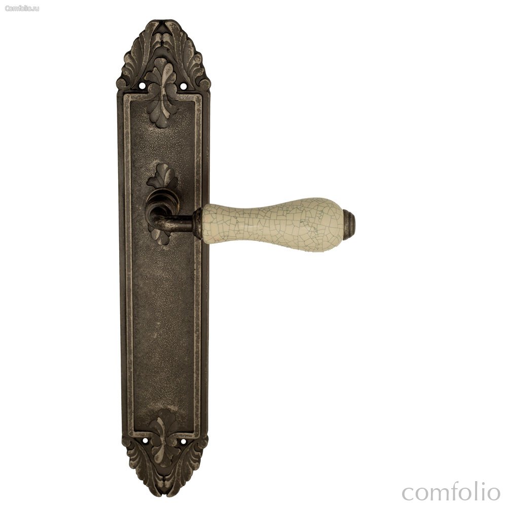 Дверная ручка Venezia Colosseo белая керамика паутинка на планке PL90 античное серебро - Venezia Collezione
