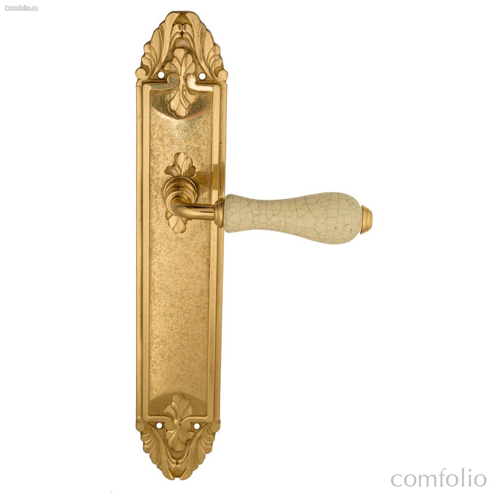 Дверная ручка Venezia Colosseo белая керамика паутинка на планке PL90 полированная латунь - Venezia Collezione