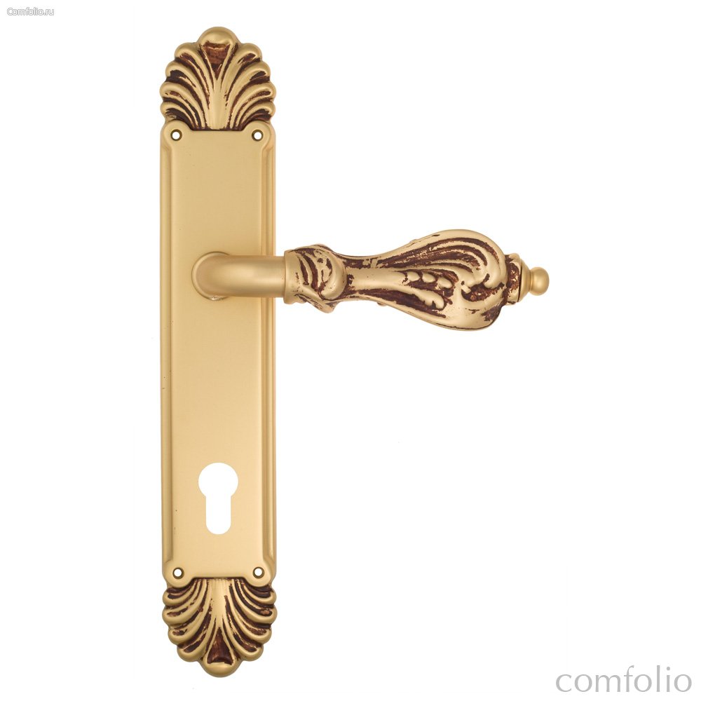 Дверная ручка Venezia Florence CYL на планке PL87 французское золото + коричневый - Venezia Collezione