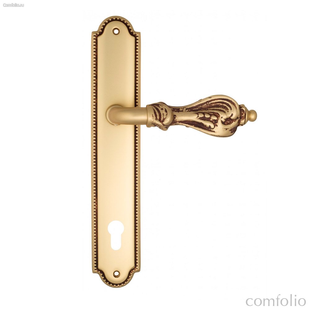 Дверная ручка Venezia Florence CYL на планке PL98 французское золото + коричневый - Venezia Collezione