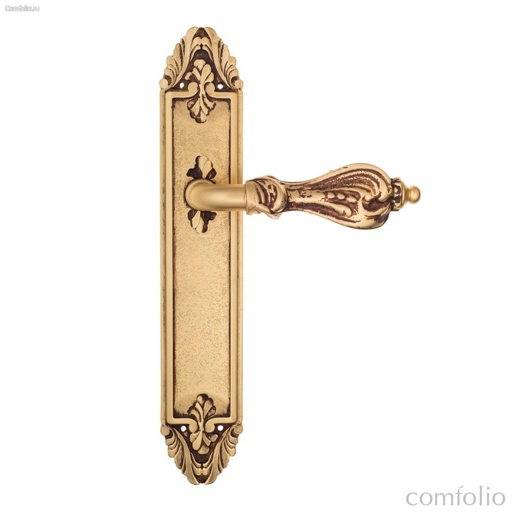Дверная ручка Venezia Florence на планке PL90 французское золото + коричневый - Venezia Collezione
