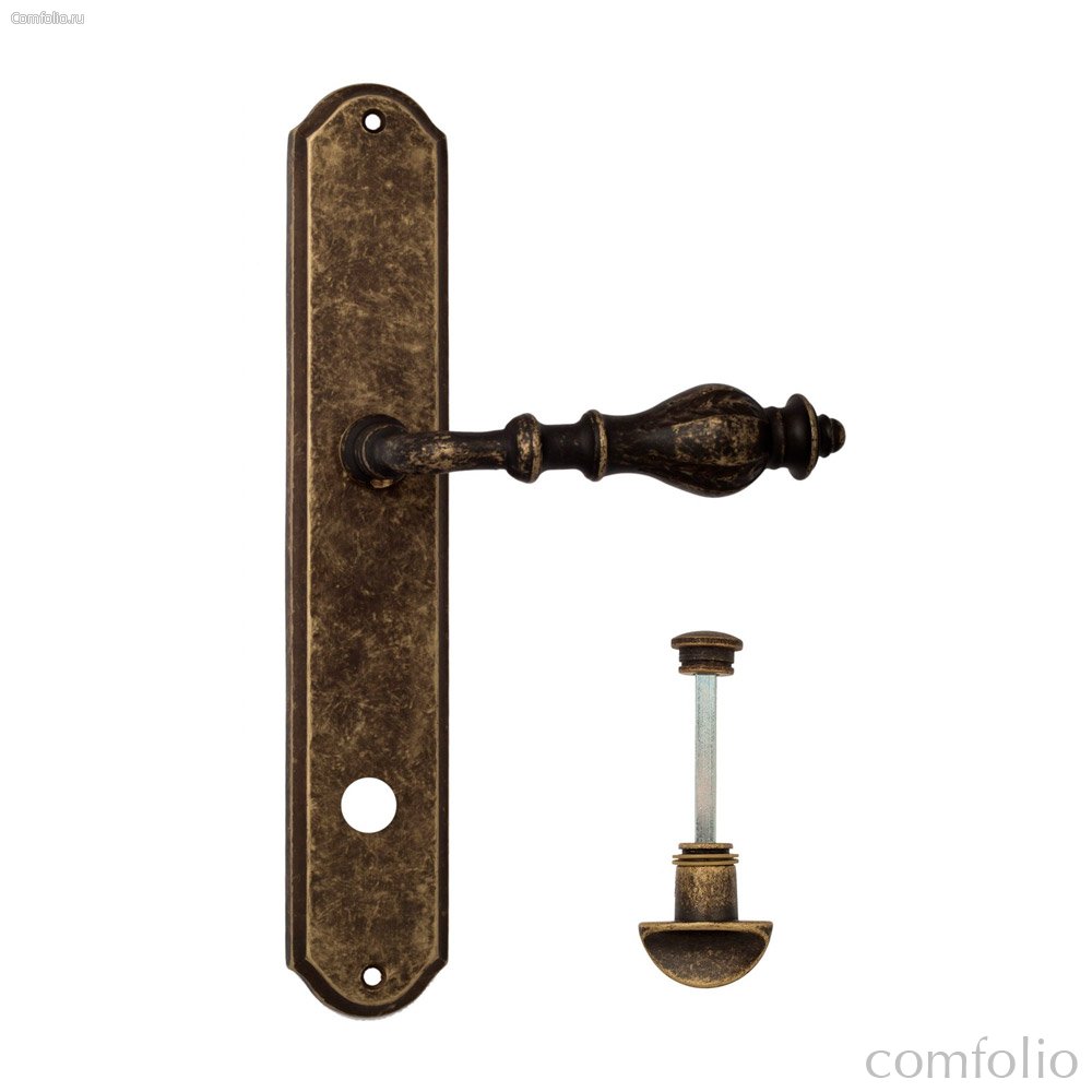 Дверная ручка Venezia Gifestion WC-2 на планке PL02 античная бронза - Venezia Collezione