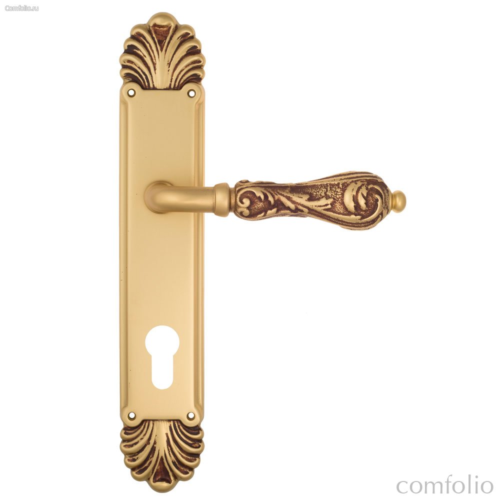Дверная ручка Venezia Monte Cristo CYL на планке PL87 французское золото + коричневый - Venezia Collezione