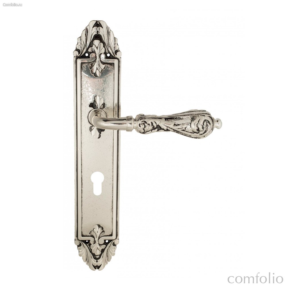 Дверная ручка Venezia Monte Cristo CYL на планке PL90 натуральное серебро + черный - Venezia Collezione