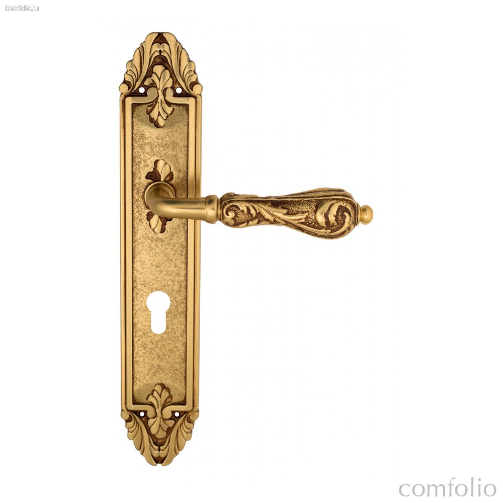 Дверная ручка Venezia Monte Cristo CYL на планке PL90 французское золото + коричневый - Venezia Collezione