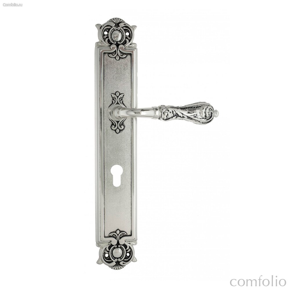 Дверная ручка Venezia Monte Cristo CYL на планке PL97 натуральное серебро + черный - Venezia Collezione