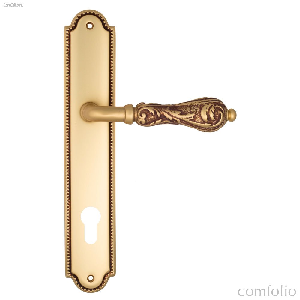 Дверная ручка Venezia Monte Cristo CYL на планке PL98 французское золото + коричневый - Venezia Collezione