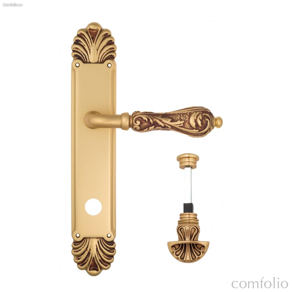 Дверная ручка Venezia Monte Cristo WC-4 на планке PL87 французское золото + коричневый - Venezia Collezione