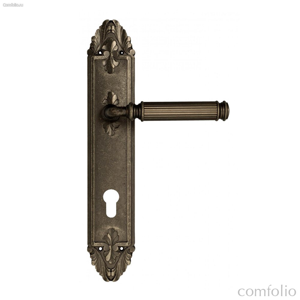Дверная ручка Venezia Mosca CYL на планке PL90 античное серебро - Venezia Collezione