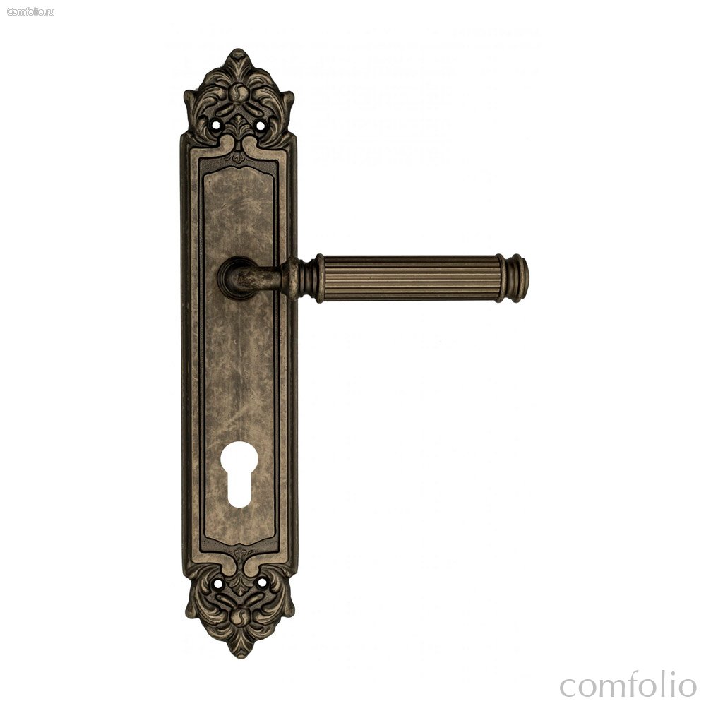 Дверная ручка Venezia Mosca CYL на планке PL96 античное серебро - Venezia Collezione