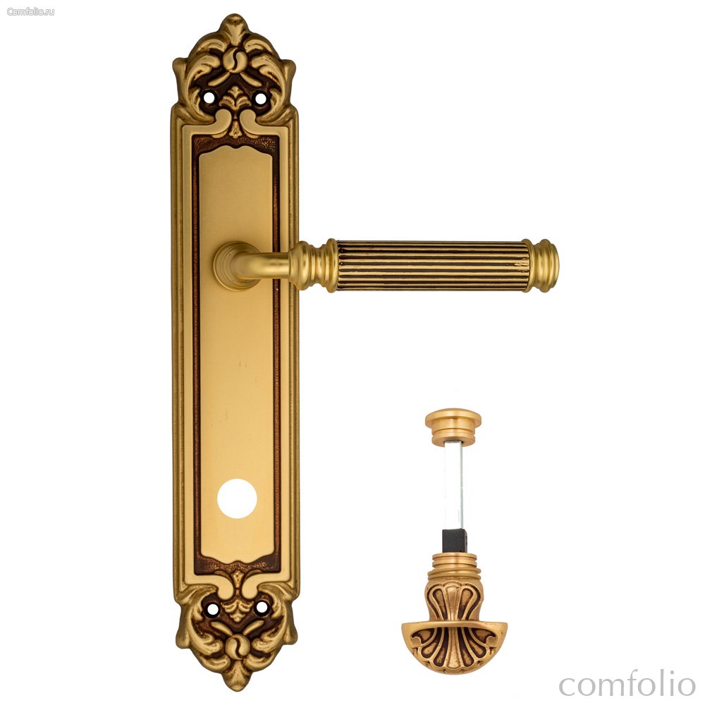 Дверная ручка Venezia Mosca WC-4 на планке PL96 французское золото + коричневый - Venezia Collezione
