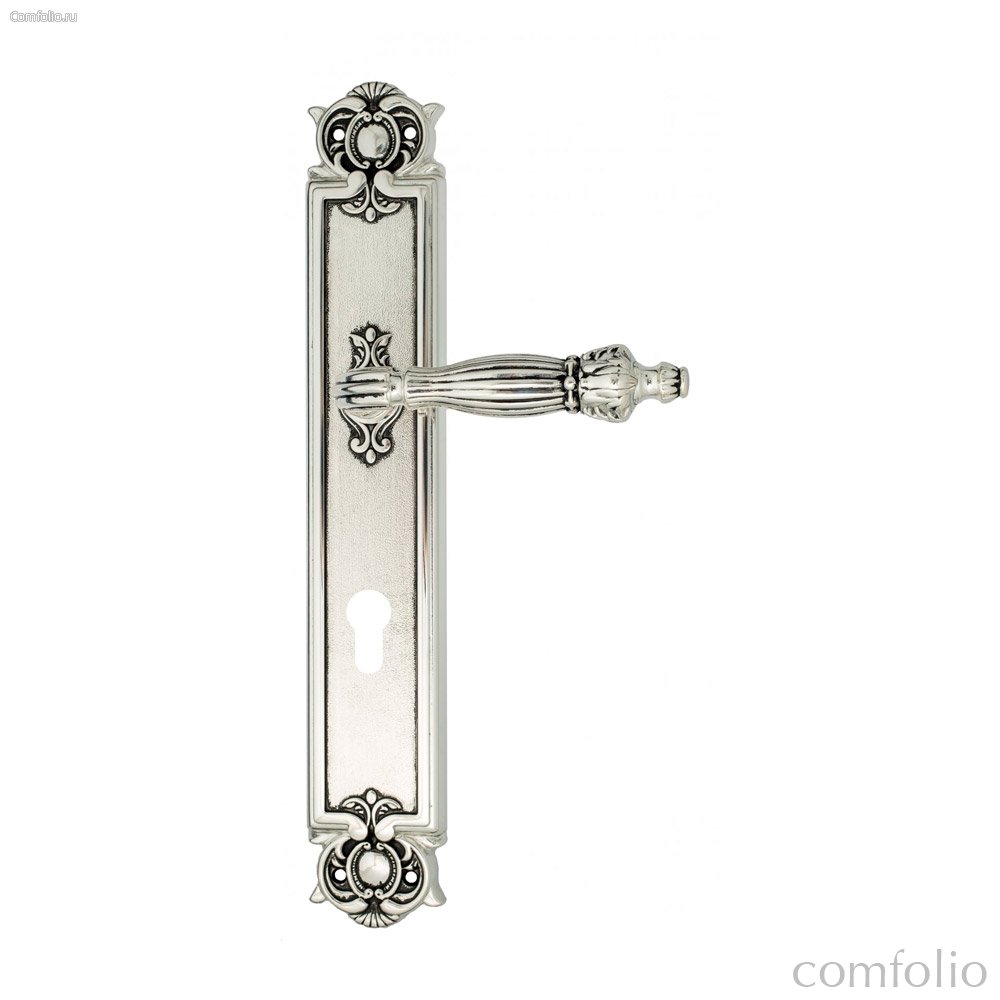 Дверная ручка Venezia Olimpo CYL на планке PL97 натуральное серебро + черный - Venezia Collezione