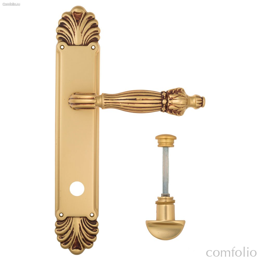 Дверная ручка Venezia Collezione Olimpo WC-2 на планке PL87 французское золото + коричневый