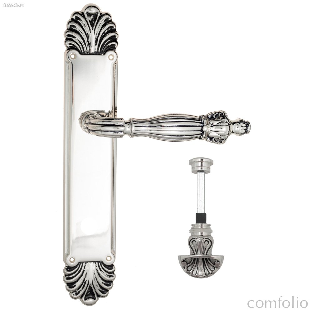 Цена товара Дверная ручка Venezia Olimpo WC-4 на планке PL87 натуральное серебро + черный - Venezia Collezione указана в российских рублях. При заказе от 5990 рублей - доставка курьером по Москве и почтой по всей России осуществляется бесплатно. Бесплатная доставка при заказе от 5 990 р.
