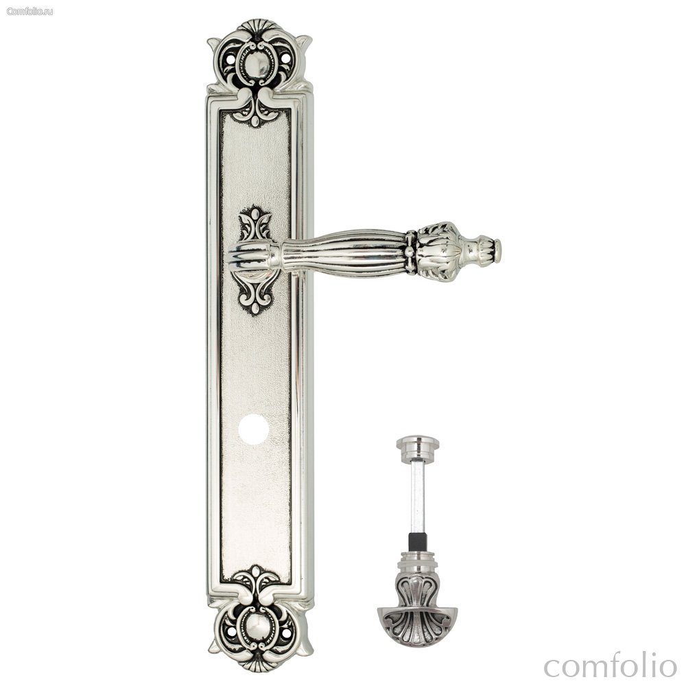 Цена товара Дверная ручка Venezia Olimpo WC-4 на планке PL97 натуральное серебро + черный - Venezia Collezione указана в российских рублях. При заказе от 5990 рублей - доставка курьером по Москве и почтой по всей России осуществляется бесплатно. Бесплатная доставка при заказе от 5 990 р.