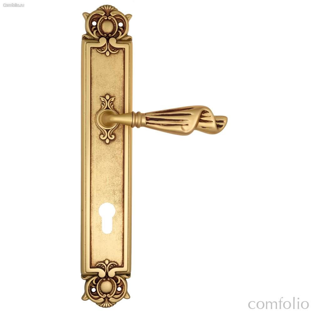Дверная ручка Venezia Opera CYL на планке PL97 французское золото + коричневый - Venezia Collezione