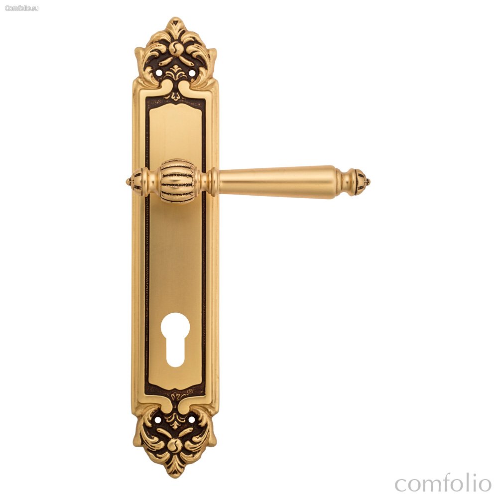 Дверная ручка Venezia Pellestrina CYL на планке PL96 французское золото + коричневый - Venezia Collezione