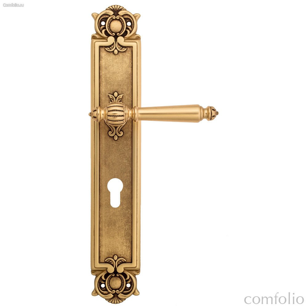 Дверная ручка Venezia Pellestrina CYL на планке PL97 французское золото + коричневый - Venezia Collezione