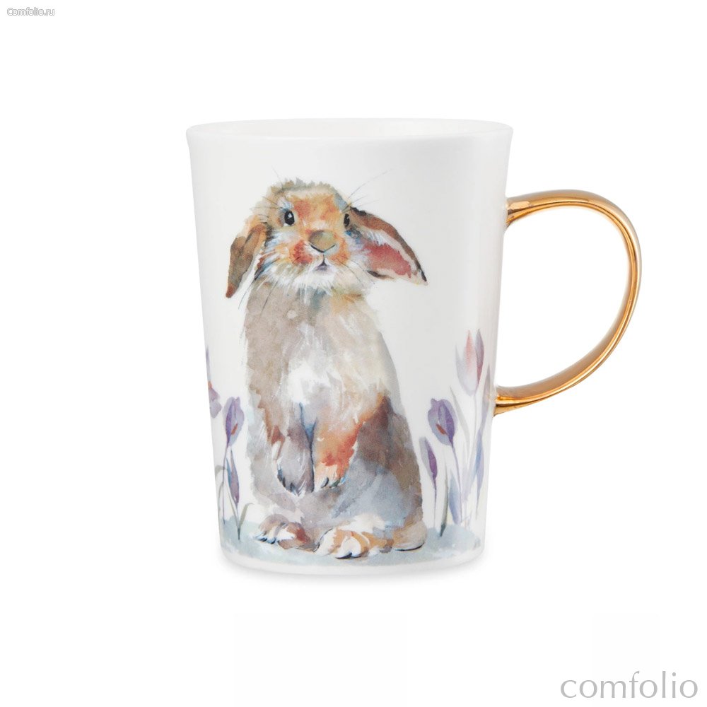 Кружка Mix&Match Синергия Пасхальный кролик 450 мл, золотистая ручка, фарфор костяной - Mix&Match