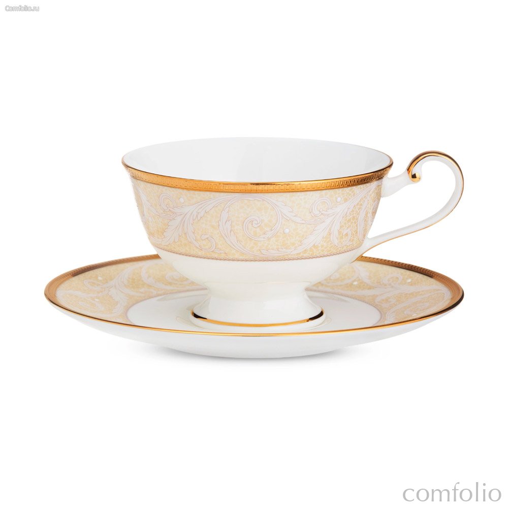 Чашка чайная с блюдцем Narumi Золотой ноктюрн 230 мл, фарфор костяной - Narumi