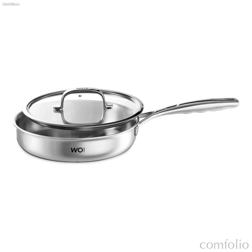 Сковорода со стеклянной крышкой WO HOME Verona 24х5,5 см, сталь нержавеющая, п/к - Wo Home