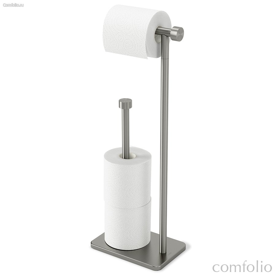 "Держатель для туалетной бумаги Cappa – отличный выбор для поклонников стиля минимализм и всех, кто ценит качество и практичность. Напольный аксессуар отличается эргономичным дизайном и компактностью, что обеспечивает удобное использование и установку в санузлах даже с небольшой площадью. Функциональные элементы из высокопрочной стали делают конструкцию надежной и долговечной. Держатель позволяет разместить одновременно три рулона туалетной бумаги – один используемый и два резервных.
