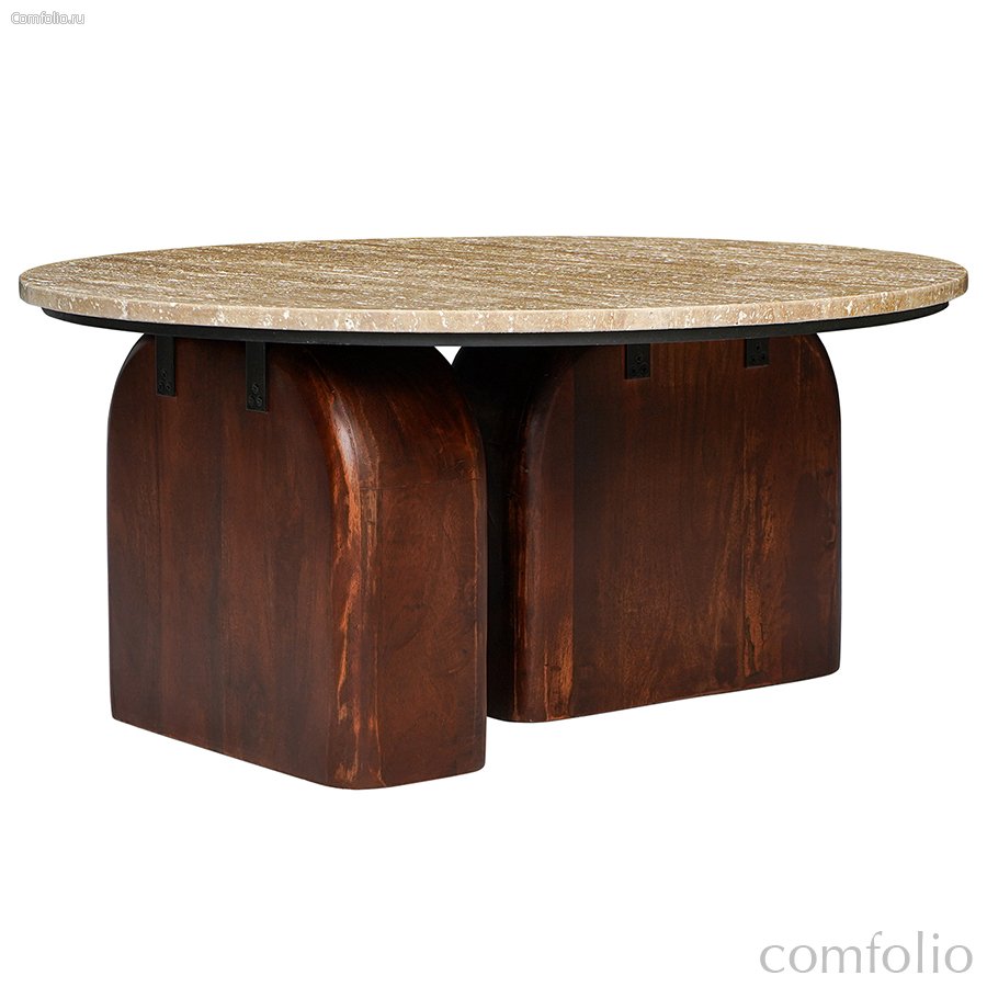 "Столик кофейный Torhill от дизайнерского бренда Bergenson Bjorn – элегантное и функциональное дополнение к любому интерьеру. Столешница из травертина и основание из дерева создают прекрасный тандем, который привносит в интерьер ощущение гармонии и единения с природой.