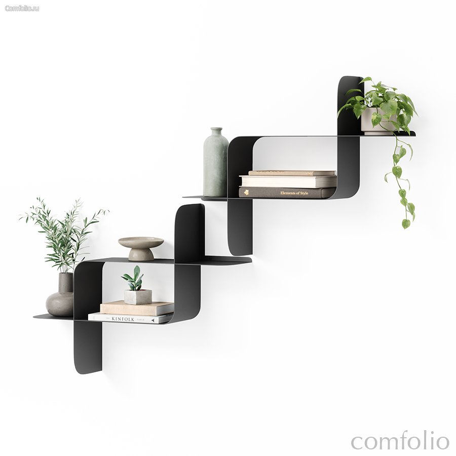 Набор металлических настенных полок Montage, 2 шт., черные - Umbra