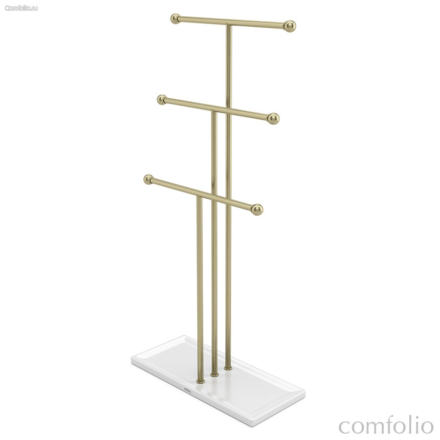 "Держатель для украшений Trigem — это элегантное решение для хранения драгоценностей. Три перекладины, расположенные на разной высоте, создают идеальное пространство для размещения ожерелий. Основание с бортиками станет небольшим, но практичным местом для хранения колец, серег и других аксессуаров.
