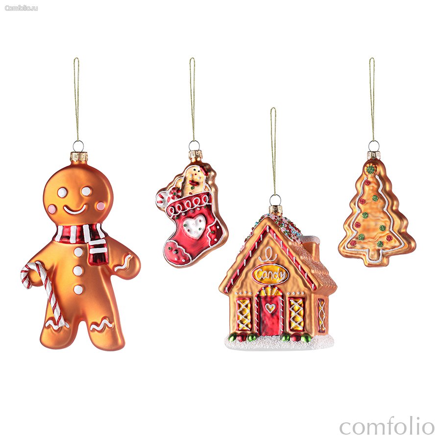 Набор ёлочных украшений Ginger celebration из коллекции New Year Essential, 4 шт. - Tkano