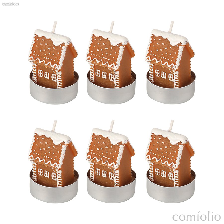 Набор декоративных свечей Gingerbread houses из коллекции New Year Essential, 6 шт. - Tkano