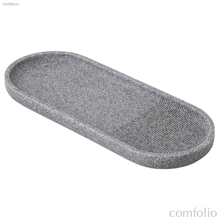 "Подставка для ванных принадлежностей Loup выполнена из полирезина, стилизованного под натуральный камень графитового оттенка.